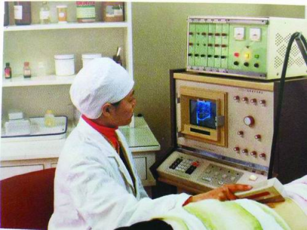 到了现场,沈志华看到,这里正在举办一场B型超声实时图像诊断仪展销会。产自日本、大小类似于普通示波器的B超仪引起了人们的注意。只见操作者手持一个扁平型、约手掌宽的探头在受试者腹部滑动,小小的长方形显示器屏幕上随之出现一幅动态黑白图像,接连显示出肝、胆、肾脏的形态。看到这儿,大家不禁连连称赞。