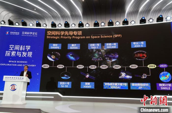 4月27日下午,在2024中关村论坛空间科学论坛上,中国科学院国家空间科学中心主任王赤院士解读介绍空间科学先导专项。中新网记者孙自法摄