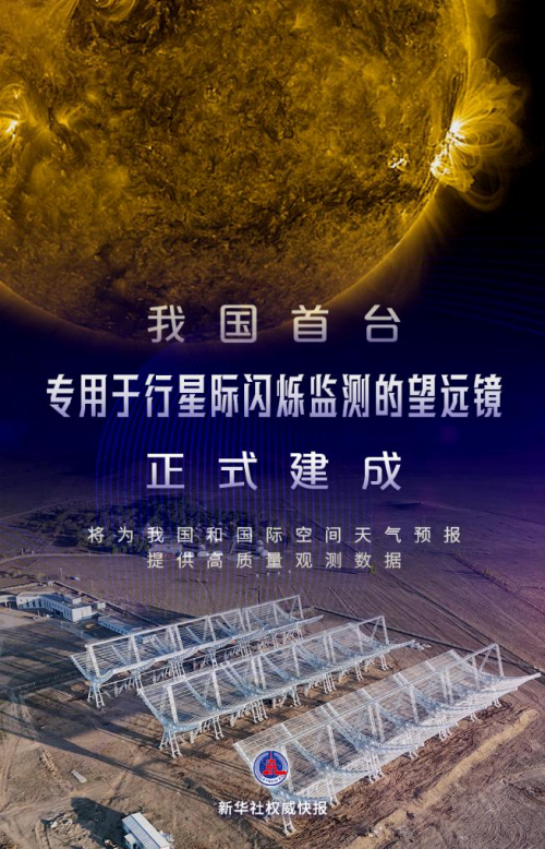 据介绍,行星际闪烁监测望远镜将通过逐日遥测行星际太阳风速度,捕捉太阳风在行星际空间的动态传播过程,为我国和国际空间天气预报提供原始观测数据和定量数值预报产品,从而减少或避免太阳活动导致的灾害性空间天气给航空、航天、通讯、导航和电网运行等带来的严重影响。