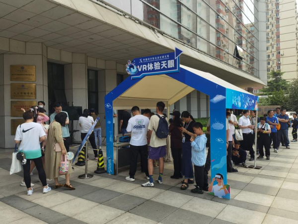 参观人群在“VR体验天眼”项目前排队。新华社记者宋晨 摄