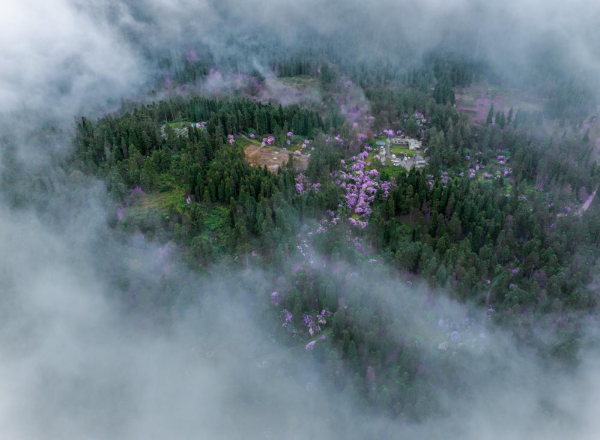 云雾之中的华西亚高山植物园(4月6日摄)。