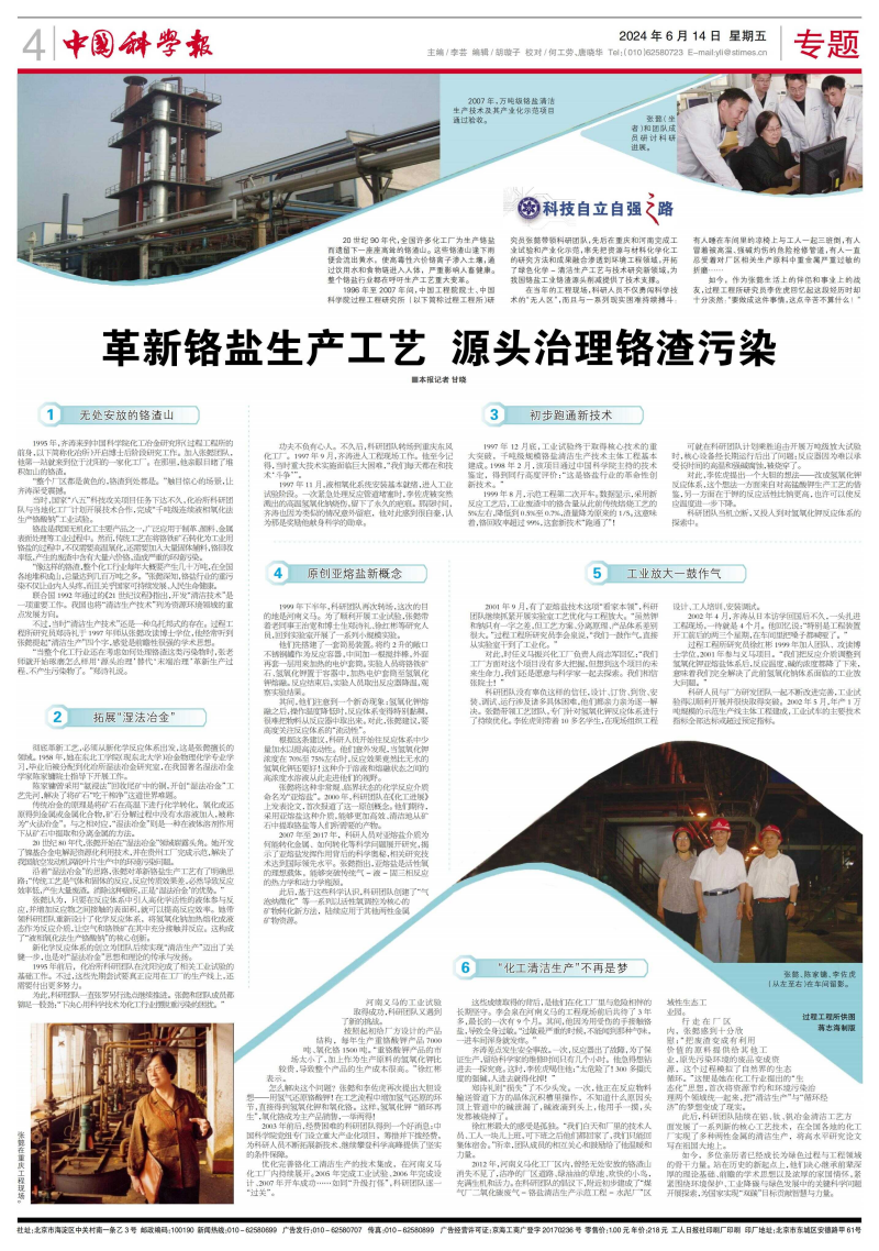 优化完善铬化工清洁生产的技术集成,在河南义马化工厂内持续展开。2005年完成工业试验、2006年完成设计、2007年开车成功……如同“升级打怪”,科研团队逐一“过关”。