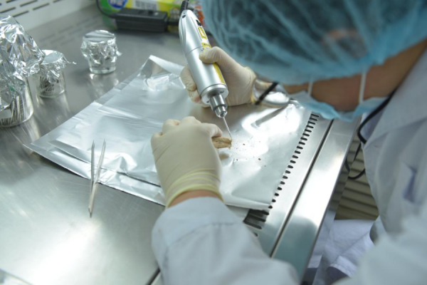 研究人员正在进行动物骨骼古蛋白样品采样。(兰州大学张东菊团队供图)