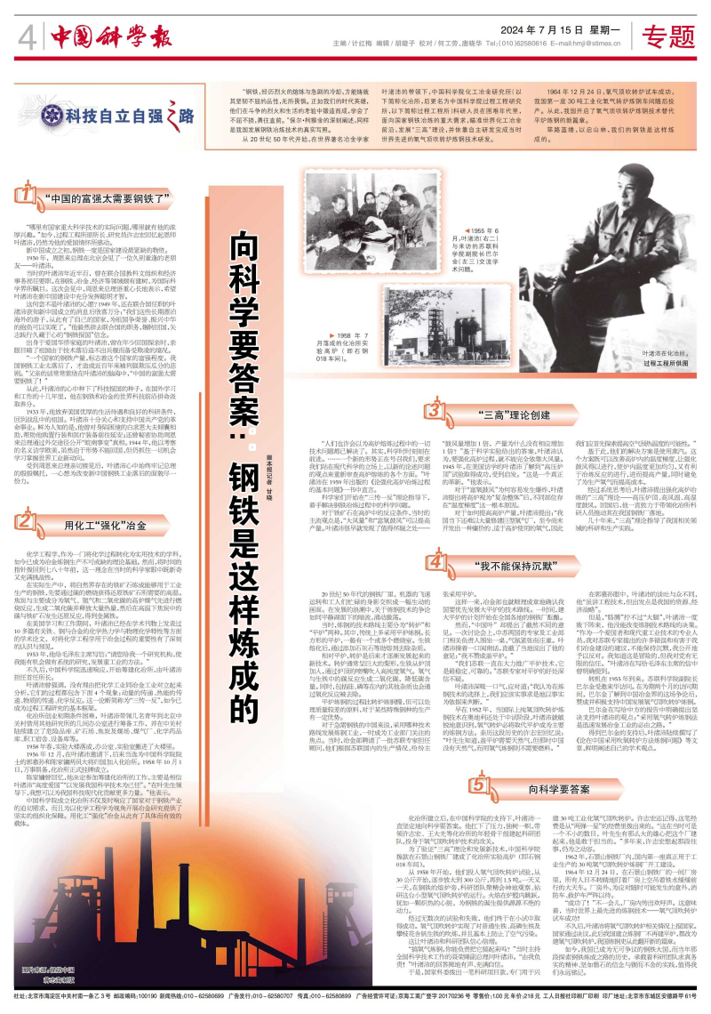 如今,我国已成为无可争议的钢铁大国,而当年那段探索钢铁炼成之路的历史,承载着科研团队求真务实的精神、坚如磐石的信念与锲而不舍的实践,值得我们永远铭记。