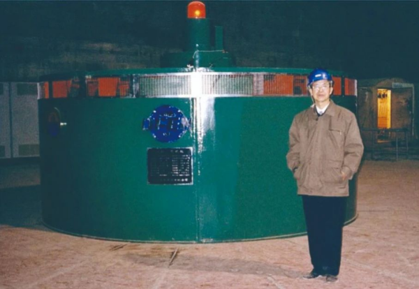 2000年,顾国彪在李家峡水电站40万千瓦蒸发冷却水轮发电机启动试验现场。