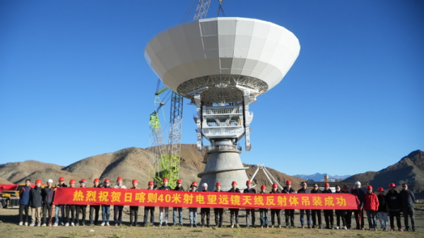 10月7日,由中国科学院上海天文台(以下简称上海天文台)与中国电子科技集团公司第三十九研究所(以下简称中电39所)联合研制的日喀则40米射电望远镜,在西藏自治区日喀则市顺利完成天线系统的主反射体的吊装,标志着天线机械架设已初步完成。