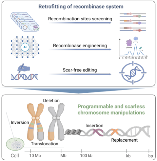 研究团队开发了超大片段DNA精准无痕编辑新方法,构建PCE与RePCE两个可编程染色体编辑系统,实现超大片段DNA精准无痕操纵,成功破解了基因组编辑的“尺度困境”。