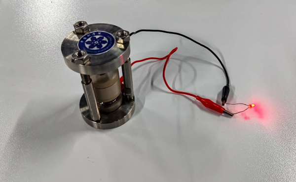 基于上述新型氢负离子电解质材料,团队利用经典的储氢材料氢化铝钠(NaAlH4)作正极,贫氢的二氢化铈(CeH2)作负极,组装出CeH2|3CeH3@BaH2|NaAlH4这一氢负离子原型电池。实验数据显示,该电池正极首次放电容量高达984 mAh/g(毫安时/克),且经过20次充放电循环后,仍能保持402 mAh/g的容量。团队进一步搭建了叠层电池,把电压提升到1.9伏,并成功点亮了黄色LED灯,证明了氢负离子电池为电子设备供电的可行性。这标志着我国科研人员实现了氢负离子电池从“原理概念”到“实验验证”的跨越。