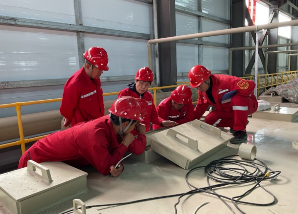 中国科学院青海盐湖研究所科研人员对萃取车间技术员进行现场工艺培训。(中国科学院青海盐湖研究所供图)