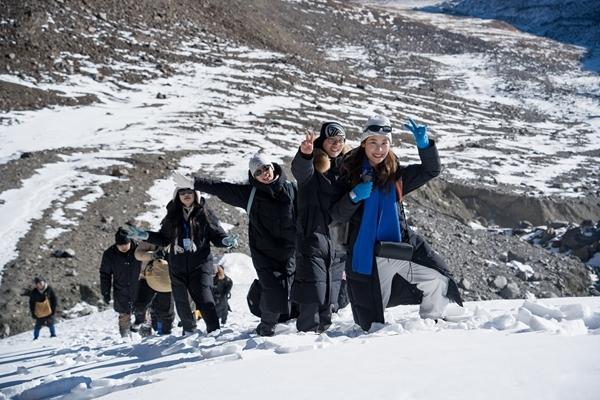 2025年12月23日,新疆乌鲁木齐,“2025国际冰川保护年青年科学探索暨数字冰川保护青年环境志愿行动”中,青年代表登上天山1号冰川。极地未来供图