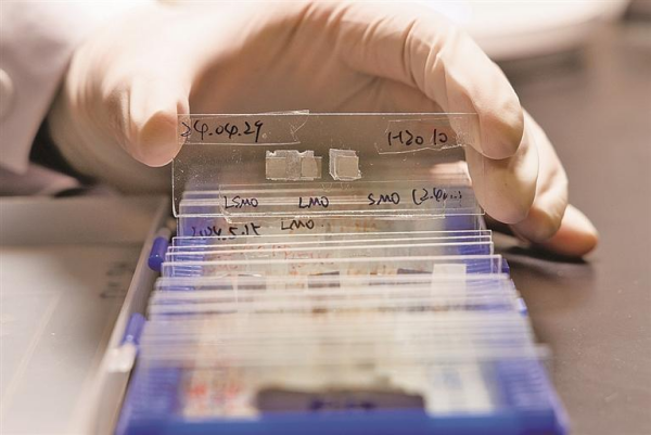 1月21日在中国科学院物理研究所实验室拍摄的用于铁电测试的铁电电容器样品。新华社记者 金立旺摄