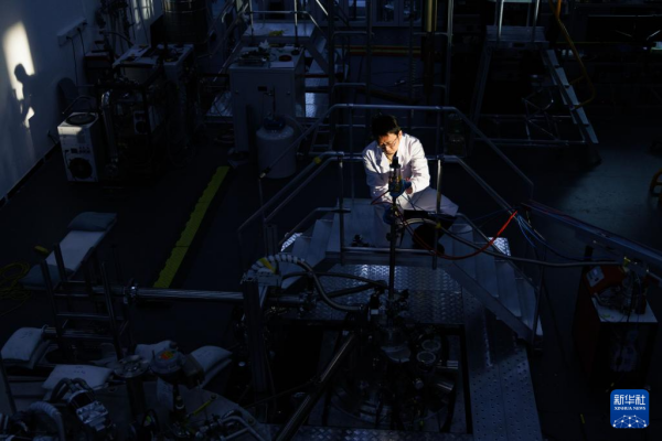 1月26日,在位于北京怀柔的中国科学院物理研究所综合极端条件实验装置极低温强磁场量子振荡实验站,实验站负责人、副研究员李岗在放置实验测量杆。新华社记者 金立旺 摄