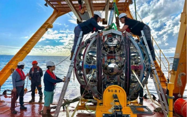 工程师准备将1个探测器添加到海底KM3NeT网络中。图片来源:Paschal Coyle CNRS