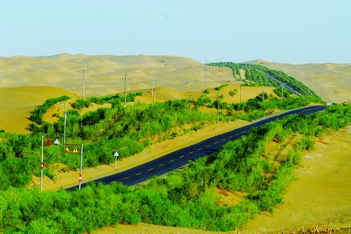 1997年起,他们把筛选出来的树种直接种植在沙漠公路两侧,开始了沙漠公路防护林建设试验,到2000年在塔克拉玛干沙漠腹地共建成了6.3公里的生物防护沙示范段。