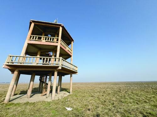 “脚步轻点,否则会惊扰鸟儿。”邹业爱边走边提醒记者。观鸟塔一楼有芦苇等遮挡,风较小。登上三楼,寒风陡然加剧,呼啸声灌满双耳,不一会儿,双手就冻得不听使唤。“这风不算大,湖区一些地方风速最高达到每秒18米左右,无人机都没法用。”