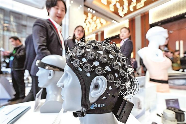 脑机接口智能装备吸引观众前来参观。新华社发