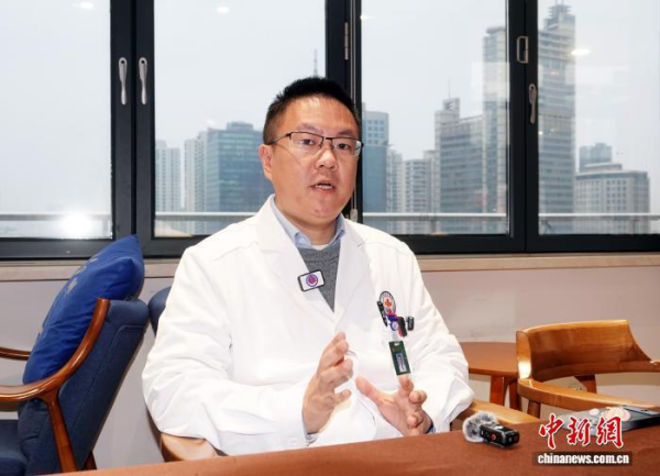 3月17日,上海长征医院殷浩教授向媒体介绍研究成果的临床试验相关情况。中新网记者 孙自法 摄