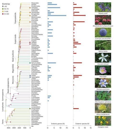 中国维管植物时间树与特有属、特有种概况。中国科学院植物所 供图