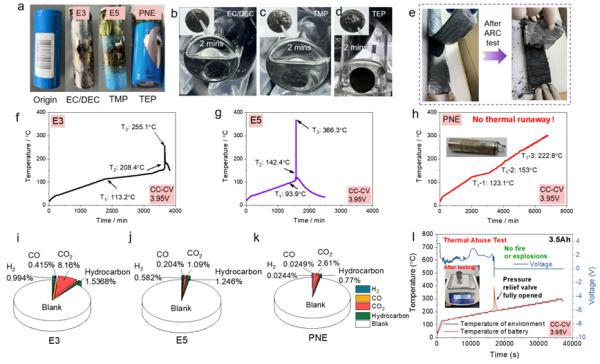 电池安全一直是制约新能源产业规模化发展的核心难题。传统碳酸酯类有机电解质虽电化学性能优异,但易燃特性是引发热失控的关键隐患。长期以来,行业普遍将“电解质不可燃”作为安全核心标准。该团队研究首次证实:阻燃并不等于绝对安全,即便使用阻燃型磷酸酯电解质,电池仍可能发生严重热失控,这一发现彻底颠覆业界传统认知,为电池安全研究开辟全新方向。