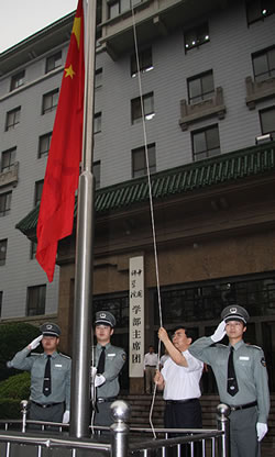 7月1日早晨,中国科学院机关举行迎“七一”升国旗仪式,庆祝中国共产党建党89周年。中国科学院常务副院长、党组副书记白春礼发表讲话并升旗。