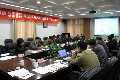 11月23日,中科院长春分院党组副书记、副院长、纪检组长李冰率纪监审干部一行10人到武汉分院就如何推进廉洁从业风险防控工作进行交流研讨。武汉分院党组书记、副院长、纪检组长陈平平,副院长苏阳出席会议并讲话。会议由武汉分院纪检组副组长、监察审计处处长刘金海主持。