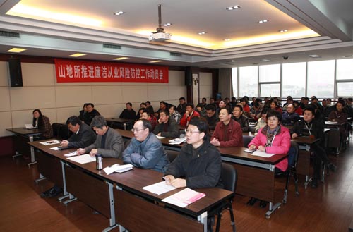 12月13日,中科院水利部成都山地灾害与环境研究所召开全面推进廉洁从业风险防控动员大会,动员部署全面推进廉洁从业风险防控工作。所领导班子全体成员出席会议,党委副书记兼纪委书记罗晓梅作了全面推进廉洁从业风险防控工作的动员报告。党委书记关晓岗主持会议。全所副研以上科研骨干、管理支撑部门全体人员及纪监审人员等80余人参加会议。