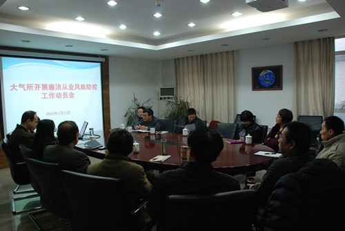 2013年1月11日上午,中科院大气物理研究所召开了廉洁从业风险防控工作动员会。副书记、副所长、机关各处处长及所级中心的负责人参加了此次会议。会议由党委副书记、纪委书记陈洪滨主持。