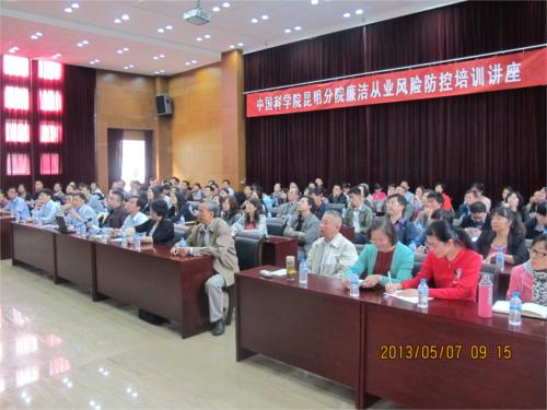为贯彻落实院党组关于加强反腐倡廉建设的部署要求,有效推进中科院昆明分院的廉洁从业风险防控工作,昆明分院于5月7日举办了廉洁从业风险防控培训班。培训班邀请了中国科学院监审局局长李定、副局长袁东授课,各研究所领导、纪监审干部、课题组长、课题组秘书、财务人员及分院机关全体职工共150人参加了培训讲座。讲座由昆明分院党委副书记、副院长、纪检组组长杨君兴主持。