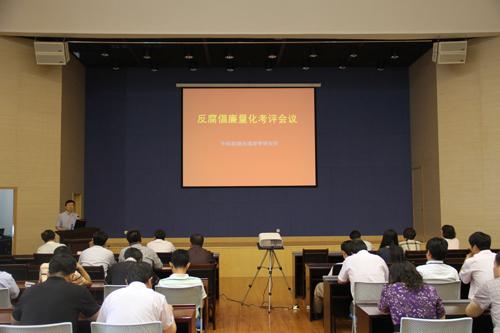 韩恩厚首先反馈了5月份到研究所开展党风廉政建设互动活动收集的科研、支撑和管理骨干对研究所建设和发展的意见和建议,并希望研究所进一步加强科研力量整合、学科凝练和领导班子建设等方面的工作。随后,韩恩厚介绍了本次反腐倡廉量化考评工作的程序和会议安排,请参会人员能公正、客观参与民主测评工作。