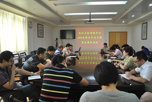 7月14日,中国科学院武汉文献情报中心召开2014年新任中层干部集体廉政谈话会,中心领导及中心新聘任的中层干部和单元负责人参加会议,会议由党委书记陈丹主持。