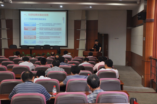 会上,上海硅酸盐所副所长杨建华解读了《国务院关于改进加强中央财政科研项目和资金管理的若干意见》的文件精神,从科技资源的配置、科研项目的分类管理、管理改革、资金管理和监督等方面讲解了文件的主要内容。