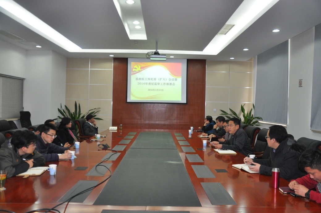 3月23日下午,中国科学院苏州生物医学工程技术研究所召开纪委(扩大)会议暨2016年度纪监审工作部署会,会议由所长助理、纪委副书记袁艳明主持,纪委委员、相关管理部门和研究室负责人、党支部书记等20余人参加了会议。