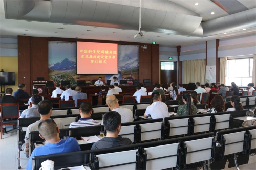 按照中央和中国科学院党组关于全面从严治党的战略部署要求,为进一步明确党风廉政建设主体责任和监督责任,7月25日,中国科学院新疆分院学习传达重要会议精神并举办党风廉政建设责任书签订仪式。新疆分院院长张小雷、分党组书记牟振江,分院系统各单位领导班子成员、中层领导、党政管理部门负责人、分院机关全体干部职工等近50人参加了签订仪式。会议由牟振江主持。