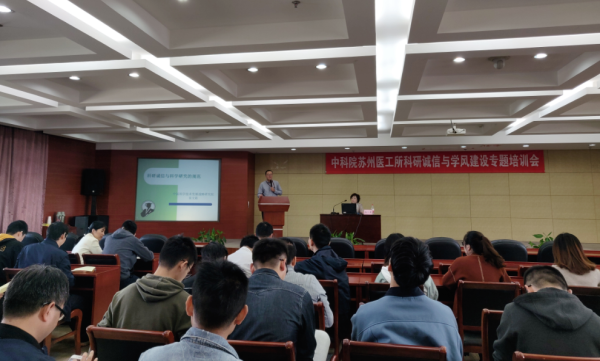 为了进一步加强科研诚信与学风建设,营造良好的科研环境,引导全所科研人员和学生遵守学术规范,坚守学术诚信,摈弃学术不端行为,11月6日上午,中国科学院苏州生物医学工程技术研究所举行科研诚信与学风建设专题培训。