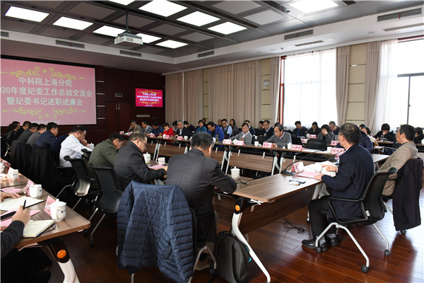 为深入贯彻落实习近平新时代中国特色社会主义思想,落实好上级党组织关于纪委书记聚焦纪检工作主责主业的要求,2020年12月24日上午,中国科学院上海分院召开2020年度纪委工作总结交流会暨纪委书记述职述廉考评会。上海分院分党组、沪区党委相关负责人,系统各单位党委、纪委负责人,纪监审部门负责人等参加会议。上海分院纪检组组长、沪区纪委书记沈兆雷主持会议。