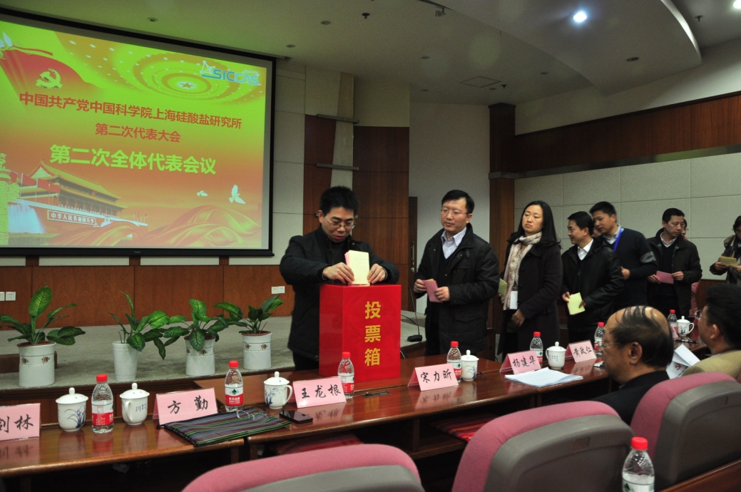 中国共产党中国科学院上海硅酸盐研究所第二次代表大会于2014年12月26日隆重召开。中科院上海分院党组副书记、纪检组组长、沪区党委副书记、纪委书记李正华,上海市科技党委组织干部处处长方勤,上海分院组织人事处处长姚娅平等出席了会议。大会开幕式由所党委委员、所长宋力昕主持,110名党员代表参加大会。大会的主要议程是听取并审议上海硅酸盐所党委工作报告和纪委工作报告,选举产生新一届党委和纪委委员。