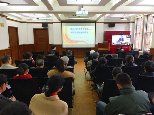 此次培训会议邀请了中央党校党建教研部副主任、教授、博士生导师张志明作题为《学习习近平总书记关于全面从严治党的重要论述》的专题报告,报告结合习近平的讲话精神和当前严峻的反腐形势,从“为什么要全面从严治党、如何全面从严治党、全面从严治党的创新与意义”三个方面进行了深入浅出的阐述,详细介绍了“五位一体”的党建战略布局,总结归纳了坚持思想建党和制度治党紧密结合、严肃党内政治生活、从严管理干部等10方面“从严治党”核心内容。