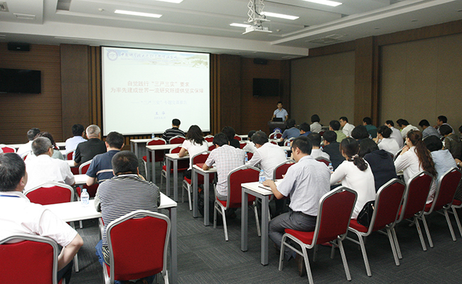 会上,党委书记王华作了题为《自觉践行“三严三实”要求,为率先建成世界一流研究所提供坚实保障》的专题党课报告。报告从深化作风建设、巩固党的执政地位、锻造队伍推进事业发展三个方面,阐述了开展“三严三实”专题教育的重大意义;从严以修身、严以用权、严以律己,谋事要实、创业要实、做人要实6个方面阐释了“三严三实”的丰富内涵;结合具体案例分析,列举了“不严不实”具体表现,指出了解决“不严不实”问题的重要性、必要性和紧迫性;从深入把握总体要求,突出问题导向,贯彻从严要求,坚持以上率下,注重讲求实效五个方面对“三严三实”专题教育提出了具体要求。
