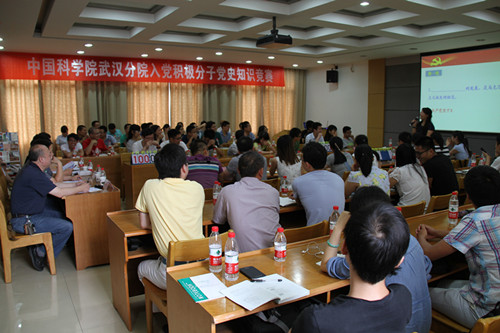 19日下午,举办了党史知识竞赛。竞赛由武汉分院团委书记主持,70余名入党积极分子参加竞赛活动。各单位选派了3名队员组队参加,其它入党积极分子作为观众参与,进行了必答题、抢答题、小组对抗题、风险题等四轮比赛。知识竞赛的形式相比理论报告更为生动,更适应新时期青年的学习方式,入党积极分子们在紧张而活跃的气氛中一起学习了党的基础理论知识,取得了较好的培训效果。
