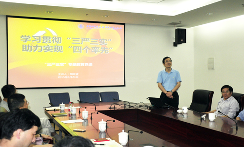 根据中央关于开展“三严三实”专题教育的统一部署,中国科学院上海有机化学研究所积极贯彻落实中科院党组《关于在全院处级以上领导干部中开展“三严三实”专题教育实施方案》,6月23日下午,党委副书记(主持工作)胡金波为党员干部讲授“三严三实”专题党课。所领导、两委委员、研究室主任、部门负责人、支部书记参加学习。