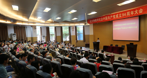 6月26日,中国科学院武汉物理与数学研究所在频标楼一楼报告厅召开纪念中国共产党成立94周年大会,所领导、各部门负责人、全所共产党员和入党积极分子隆重集会,共庆党的94岁生日。会议由副所长周欣主持。