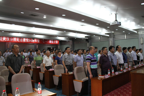 6月29日,中国科学院武汉分院召开纪念建党94周年暨“七一”表彰大会。武汉分院党组书记、副院长陈平平,副院长李衡,党组副书记、纪检组组长尚纳新,以及院属在汉各单位处级以上领导干部、党委委员、纪委委员、党支部书记、武汉分院表彰的2013-2014年度红旗党支部、先进党支部代表,优秀共产党员和优秀党务工作者近150人参加了会议。会议由陈平平主持。