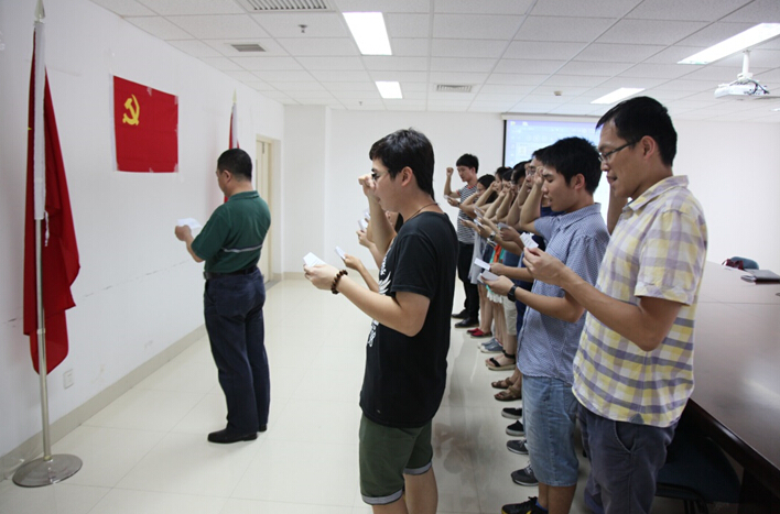 7月1日,值此建党94周年之际,中国科学院城市环境研究所党委组织新党员举行入党宣誓仪式。仪式在庄严的《国际歌》中拉开帷幕,在党委副书记(主持工作)兼纪委书记、副所长蔡澎的带领下,新党员面对党旗宣誓,部分老党员重温入党誓词。在所的新党员、部分老党员和党务干部二十余人参加了宣誓仪式。