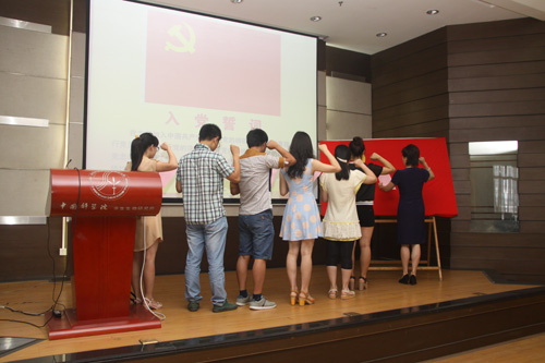 会上,新入党的6名党员在所长助理吴青丽的引领下举起右手,在党旗下庄严宣誓。