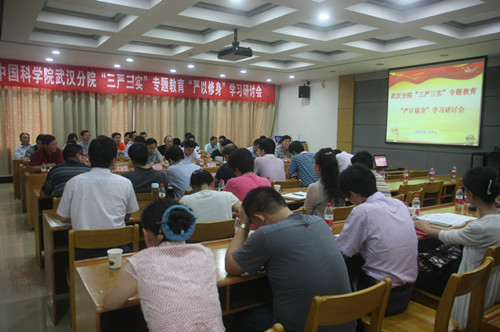 7月9日,中国科学院武汉分院召开“三严三实”专题教育“严以修身”学习研讨会。武汉分院院长袁志明,党组书记、副院长陈平平,副院长李衡,院属各单位领导班子成员及处级以上领导干部近60人参加了学习研讨会。会议由陈平平主持。