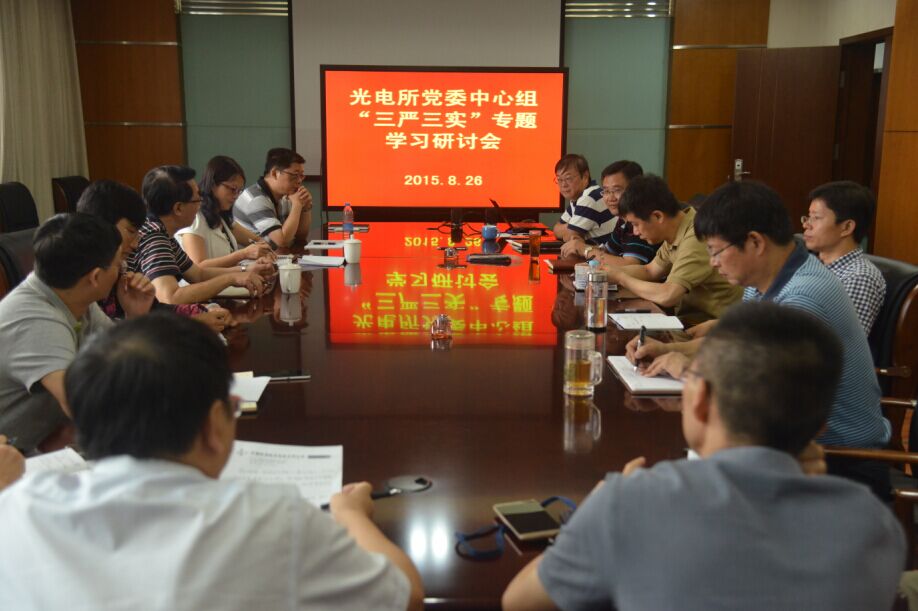 8月26日,中国科学院光电技术研究所党委中心组举行“三严三实”专题教育第二专题学习会议,会议围绕“严以律己,严守党的政治纪律和政治规矩, 自觉做政治上的‘明白人’”进行集中学习研讨。党委书记杨虎主持会议。所领导班子成员、党委委员、纪委委员参加了学习研讨。成都分院副院长陈锋、党办主任田敏到会指导并讲话。