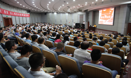 为隆重纪念中国人民抗日战争暨世界反法西斯战争胜利七十周年,缅怀先烈、铭记历史,8月28下午,中国科学院兰州化学物理研究所党委组织了专题报告和主题签名等系列活动。活动特邀人民日报社甘肃分社社长、兰州大学新闻与传播学院院长林治波为全所职工和研究生作了题为《中国人民抗日战争胜利七十周年》的专题报告。兰州化物所党委书记兼副所长王齐华,副所长师彦平,中科院院士刘维民等出席了报告会。研究所实验室(中心)正副主任、管理部门正副处长及在职职工、研究生和部分离退休职工等300余人共同参加了报告会和签名活动。报告会由王齐华主持。