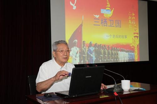 会上,杨汉黄做了题为“三栖卫国——一个老兵的故事”的报告,讲述了自己15岁参军,先后服役陆军、空军、海军,历经“抗日战争、解放战争、抗美援朝”,共计70年戎马生涯的革命历程,给大家上了一堂生动的爱国主义教育课。他勉励大家要铭记历史、珍惜现在、抓住机遇、努力奋斗,为国家的海洋科学事业做出新贡献。