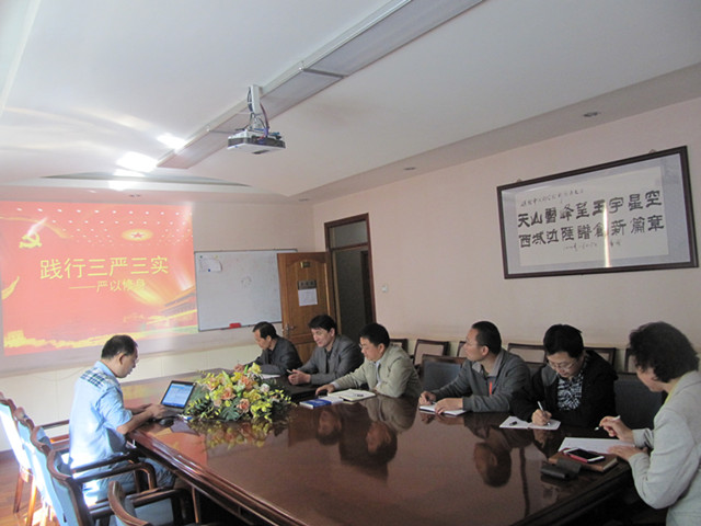 党委书记孙正文主持学习研讨会。副台长陈卯蒸结合自身学习情况作了《践行“三严三实”——“严于修身”》专题报告。报告主要从加强党性修养、坚定理想信念、提升道德境界、追求高尚情操、做到“两个自觉”五个方面展开讲解。内容主要包括理论、政治、道德、纪律、作风修养,坚守共产党人精神追求,始终是共产党人安身立命的根本,领导干部要洁身自好、洁身自爱、守住底线,远离俗气、远离低级趣味,自觉抵制歪风邪气,做到心无杂念、忠诚坚定、率先垂范。