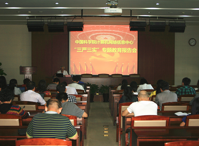 按照中国科学院计算机网络信息中心“三严三实”专题教育实施方案要求,为使广大党员干部尤其是中层以上领导干部深刻领会党中央关于开展从严治党的重大意义,进一步理解“三严三实”的丰富内涵,努力做到以“三严三实”为标尺、充分发挥示范带头作用,自觉做到信念坚定、求真务实、廉洁自律,争做“三严三实”好干部,9月18日下午,网络中心党委召开“三严三实”专题党课讲座,京区党委协作三片组织联络员、原京区党委常务副书记项国英围绕“全面从严治党”作了专题党课。